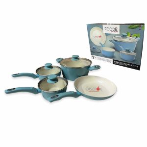 Bateria Aluminio c/recubrimiento Ceramica 7 pzas Azul – FOODE by Caserox