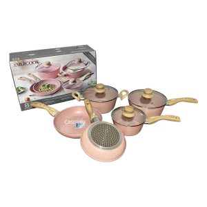 Bateria Aluminio c/recubrimiento Antiadherente 8 pzas Rosa – AMERCOOK