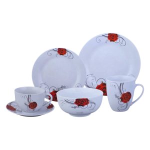 Vajilla de Ceramica Blanca con rosas 30pzas LEON – Kitchen King