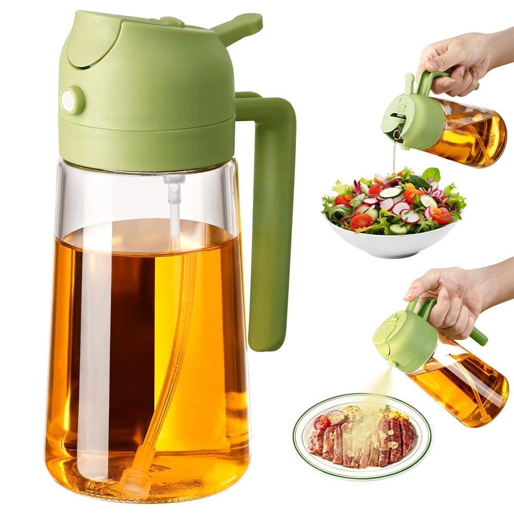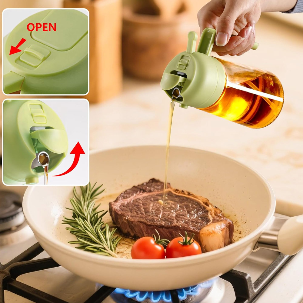 Con esta aceitera dispensador / rociador puede servir su aceite favorito, ya sea de oliva, girasol o cualquier otro tipo de aceite. Su diseño ergonómico y elegante facilita su sujeción y uso, mientras que el mecanismo pulverizador garantiza que el aceite se distribuya uniformemente por el plato. Tanto si está preparando una ensalada fresca, rociando aceite sobre una sartén caliente o aromatizando un plato, nuestro dispensador en spray será su aliado perfecto en la cocina.
