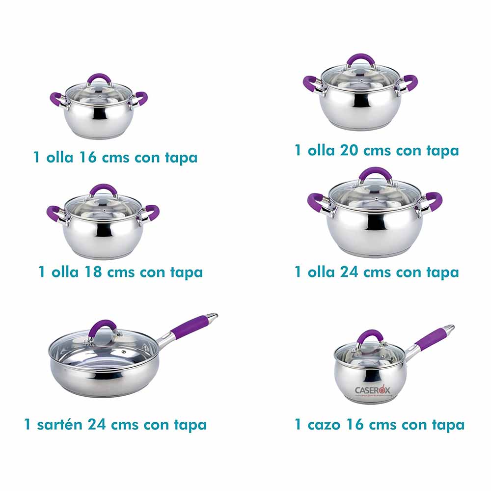• Todas las piezas incluyen tapas de vidrio templado que hace ver los alimentos de principio a fin al momento de cocinar