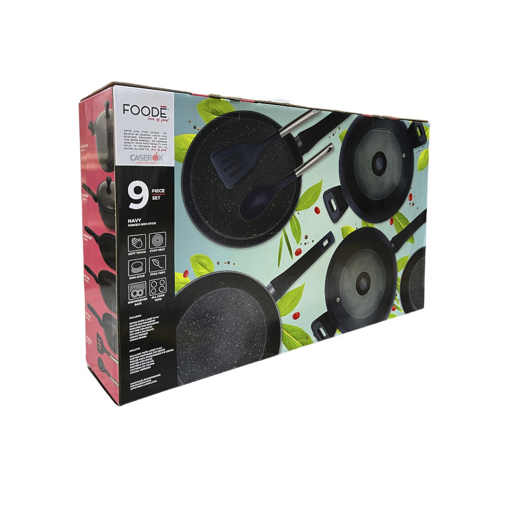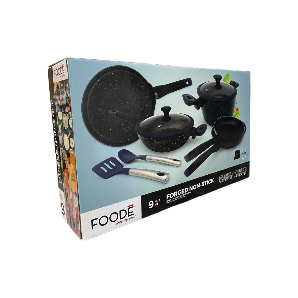 Bateria Aluminio c/antiadherente Marmol 9pzas Azul – FOODE