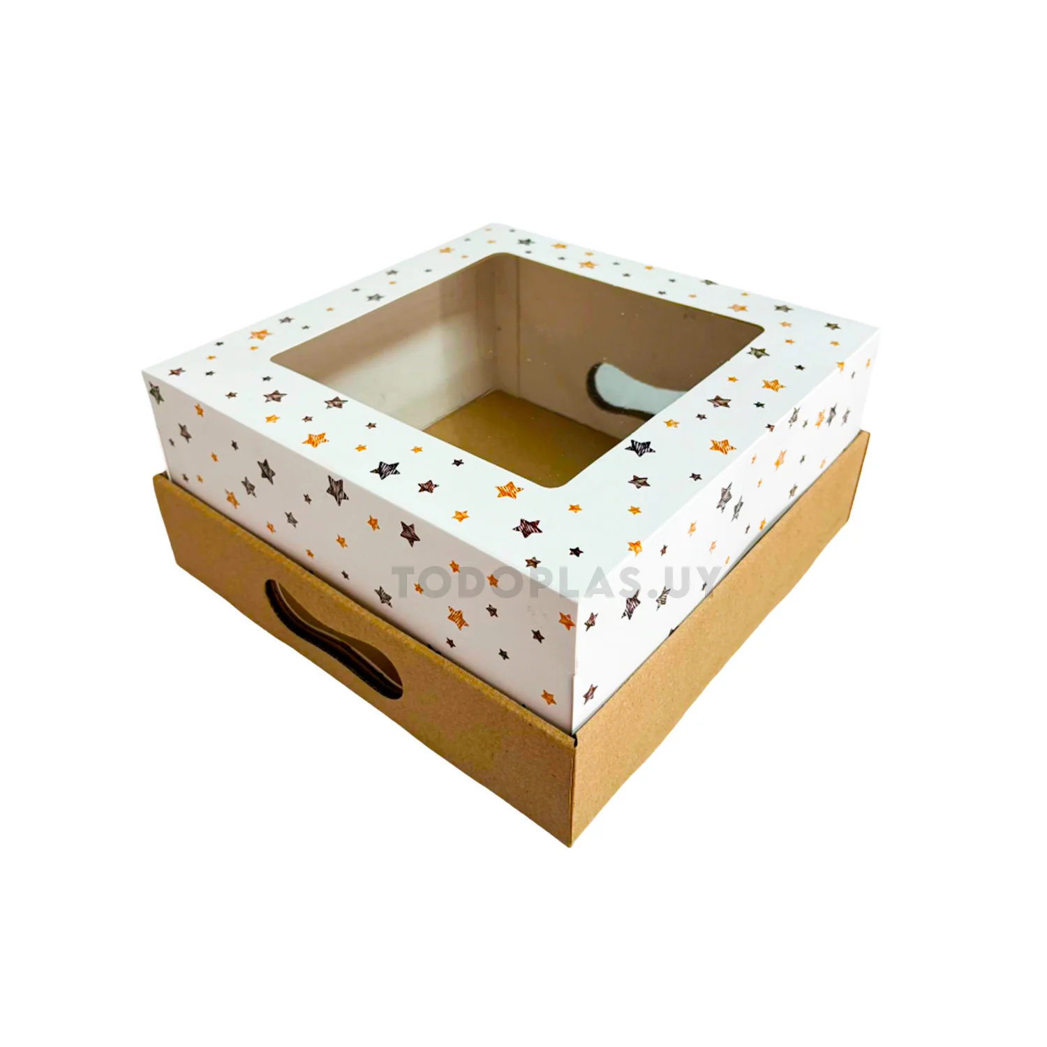 Base de cartón microcorrugado y tapa de cartulina con visor PVC