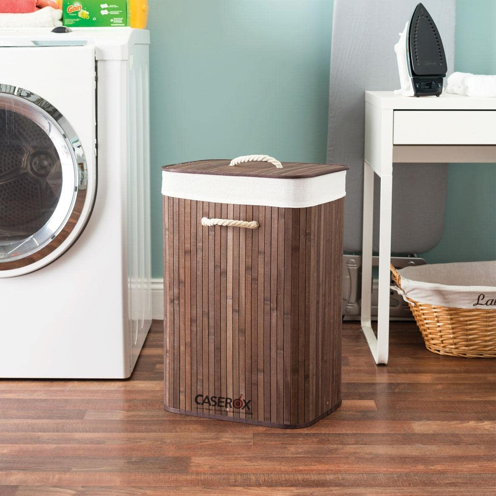 Cesto para ropa sucia con tapa y con cubierta de tela. Cuenta con asas laterales para facilitar su transportación de un lado a otro. El forro es extraíble y lavable. En el interior viene con un marco de metal resistente para mantener el forro en su lugar. Se pliega cuando no esta en uso, ideal para espacios reducidos y ahorrar espacio.