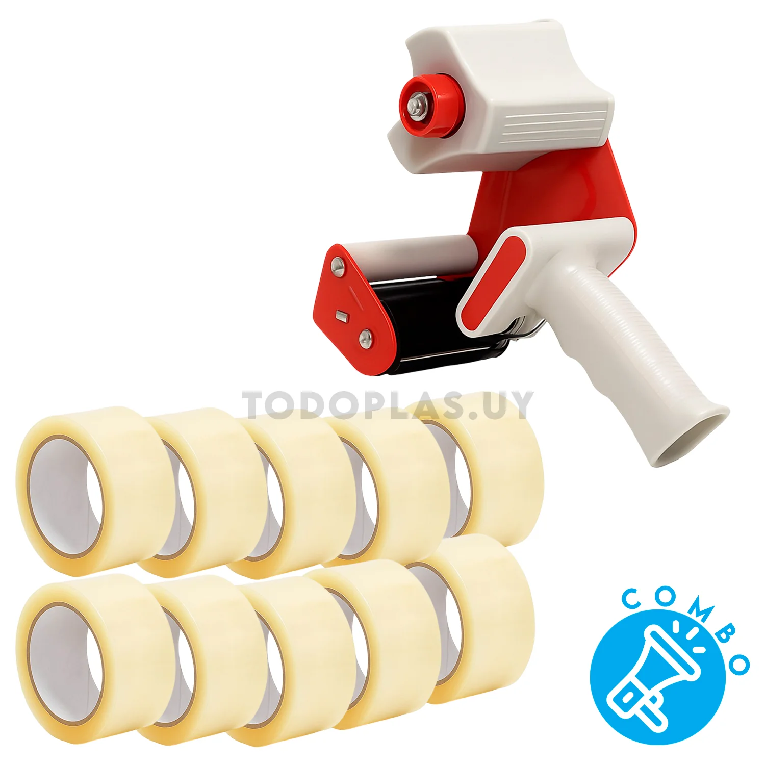 Combo Dispensador de Cinta + 10 Rollos de Cinta Transparente 4.8cm x 90mts
