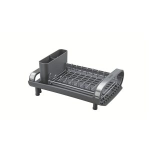 Elaborado con un atractivo acabado en acero cromado, tus platos se secarán con estilo. Y con una bandeja de plástico, tu mostrador estará a salvo de los goteos de los platos de secado, por lo que no desperdicies toallas de papel en la limpieza después de guardar tus platos. El escurridor incluso tiene un soporte para 6 tazas y un soporte para cubiertos para todos tus tenedores, cucharas, cuchillos y utensilios de cocina.