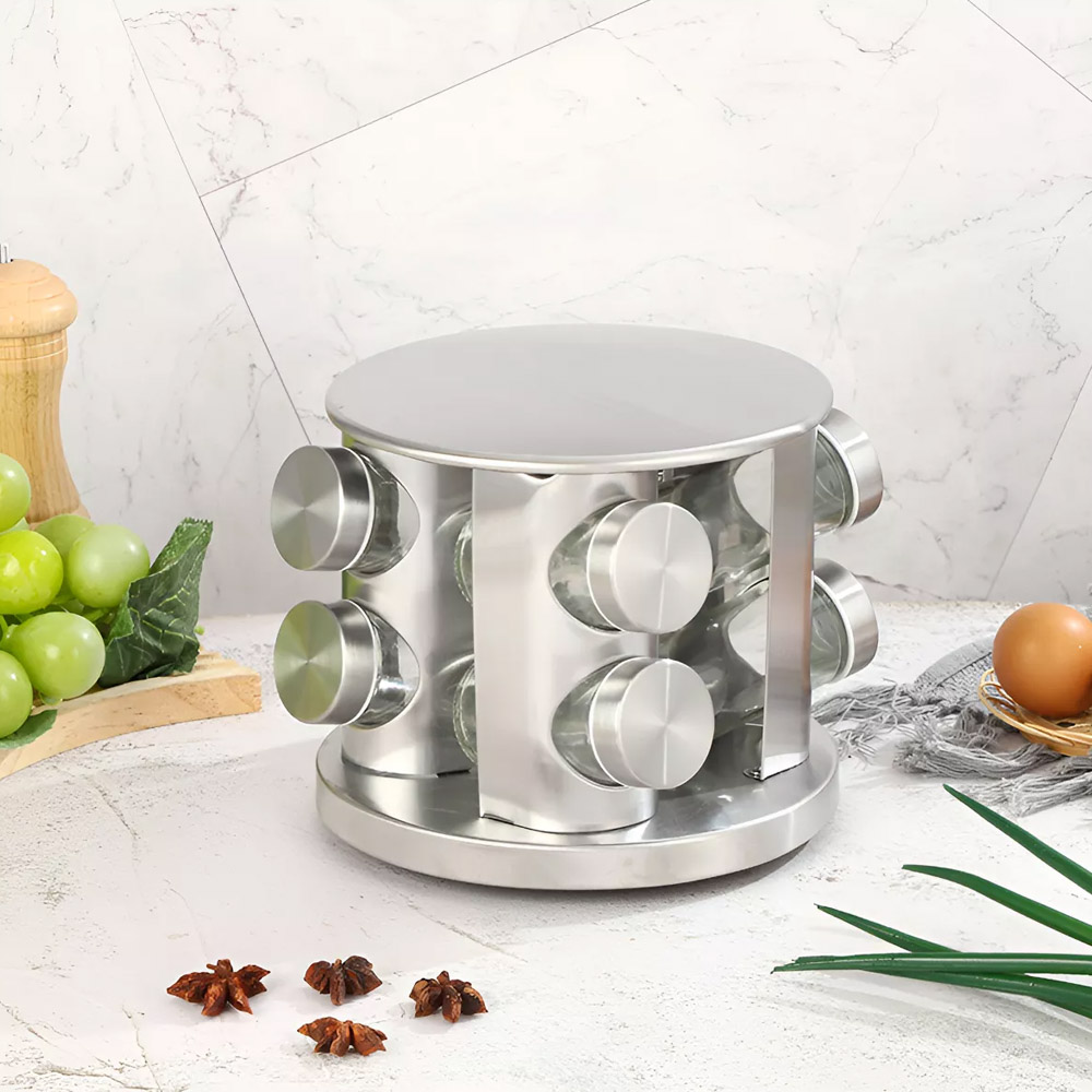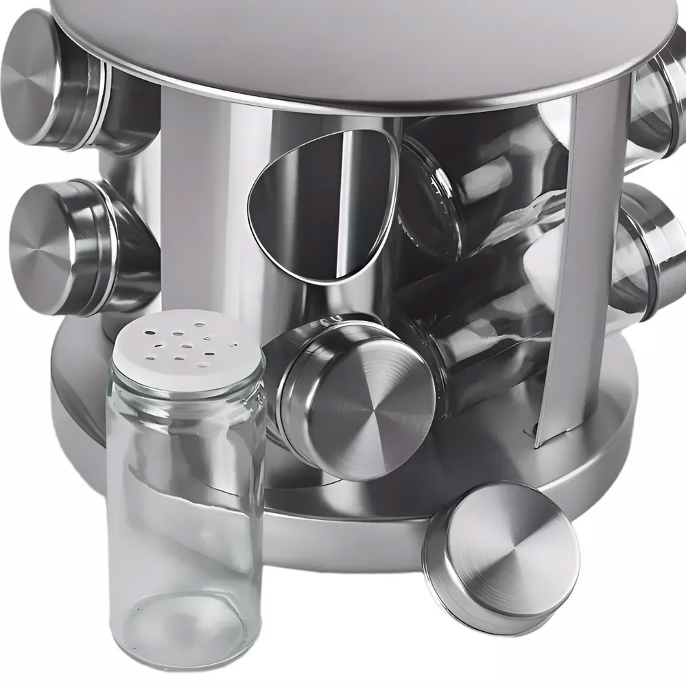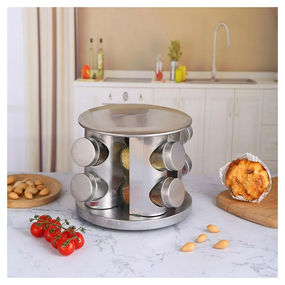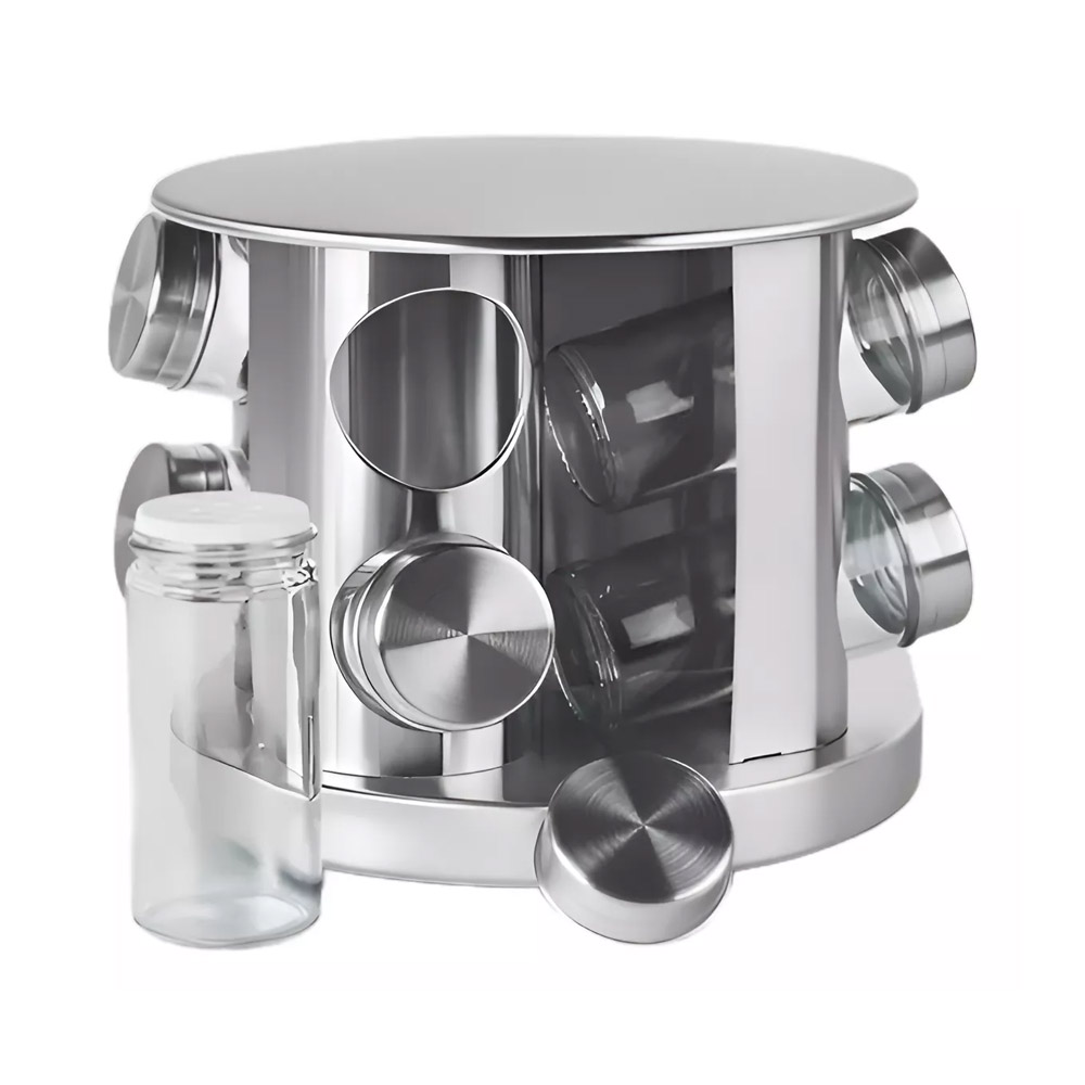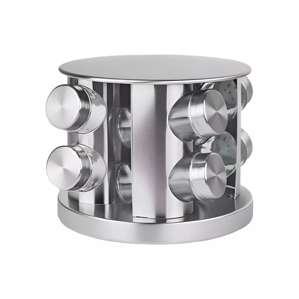 Este especiero giratorio de acero inoxidable es una pieza esencial para cualquier cocina. Con su diseño giratorio, permite un fácil acceso a tus especias favoritas. ¡Dale un toque único a tú hogar con este especiero!