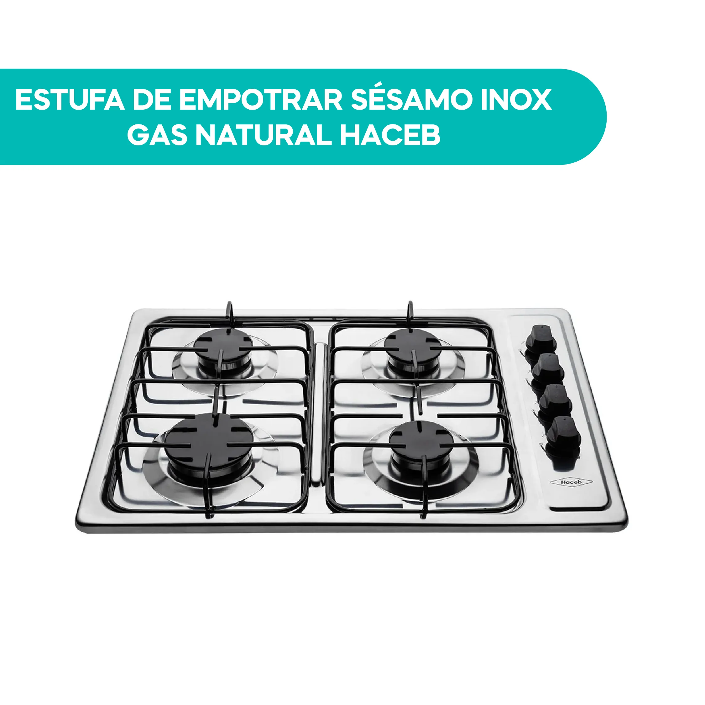 Estufa de empotrar a gas en acero inoxidable de 60×43 cm. Cuenta con 4 fogones en diferentes tamaños que se acomodan a los diámetros de tus ollas y pesos de tus preparaciones y 1 fogón rápido 35% más potente que agiliza los tiempos de cocción. Es muy seguro debido a que posee parrillas continúas para mayor estabilidad y seguridad al cocinar. Es de muy fácil limpieza gracias a la zona de encharque que recoge los derrames de líquido y las perillas removibles. Enciende solo con girar las perillas.