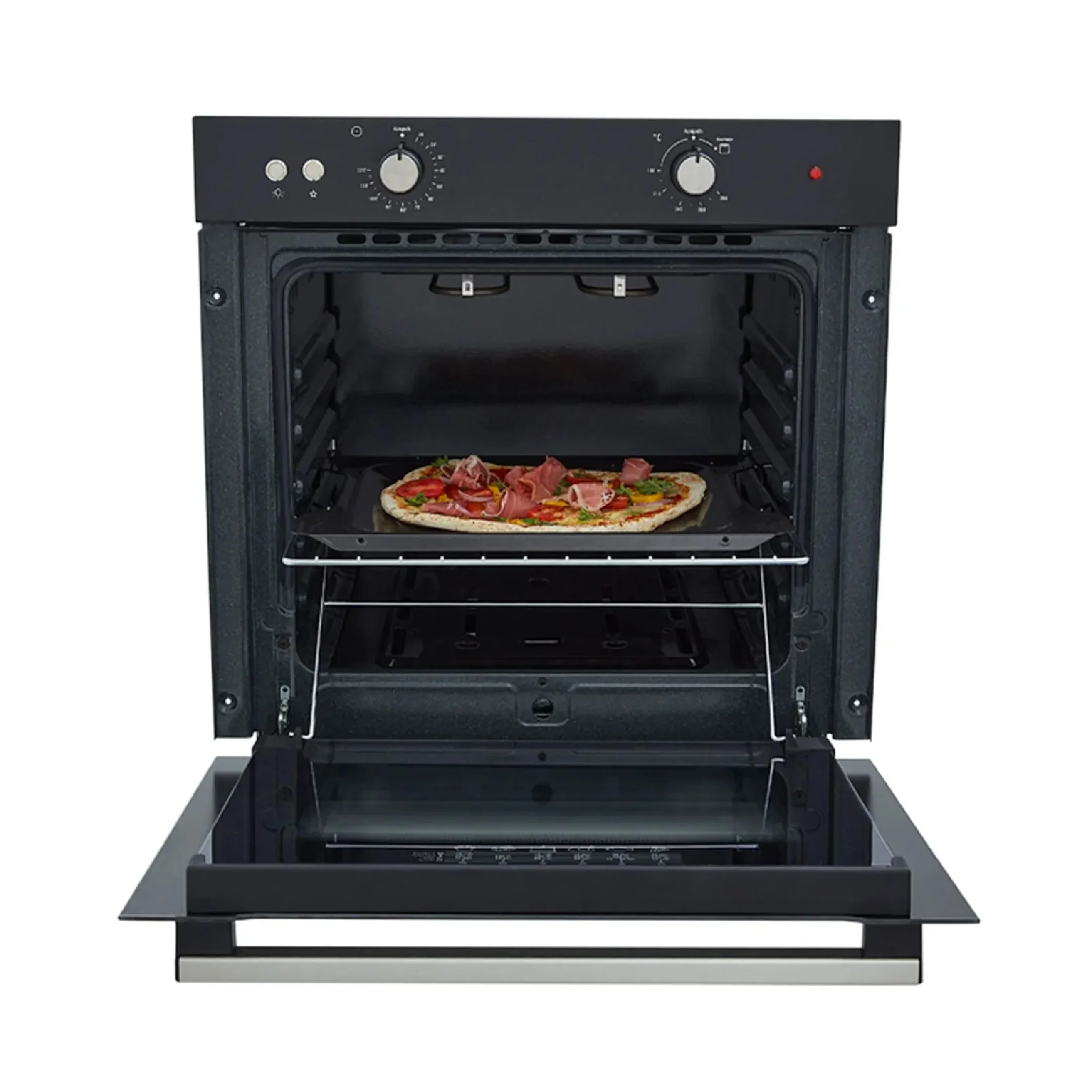 Horno mixto Tofu de 60 cm de ancho con funcionamiento a gas y gratinador eléctrico en curvas que dará un toque crujiente y dorado a las recetas. Cuenta con tecnología de cocción envolvente para acabados homogéneos, entrepaño retráctil que te acerca las recetas al abrir el horno brindándote practicidad y seguridad y tecnología Low E que garantiza baja emisividad de calor hacia el exterior. El horno tiene un amplio espectro visual e iluminación interna para hacer seguimiento a tus recetas, además, incluye una bandeja asadora versátil. Para complementar, la limpieza será un proceso fácil gracias a las superficies con pocas porosidades, el vidrio extraíble y la puerta desmontable. Línea de cocinas Haceb; recetas deliciosas, en su punto y en menos tiempo.