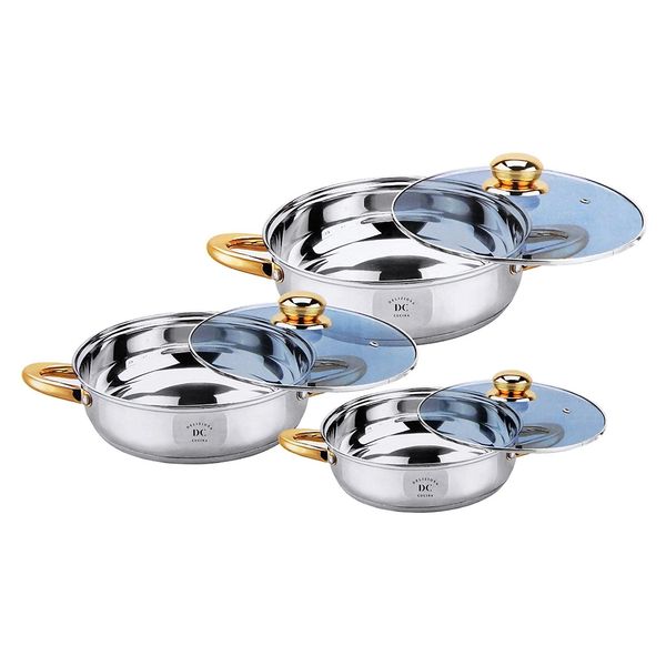 Fabricadas en inoxidable, 3 arroceras con tapa de vidrio templado muy resistentes a las altas temperaturas, y difusor de calor.