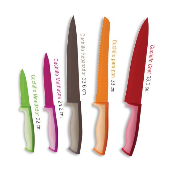 SET DE 5 CUCHILLOS MULTICOLOR CON FUNDA YAJAD MODELO Y401-CO05