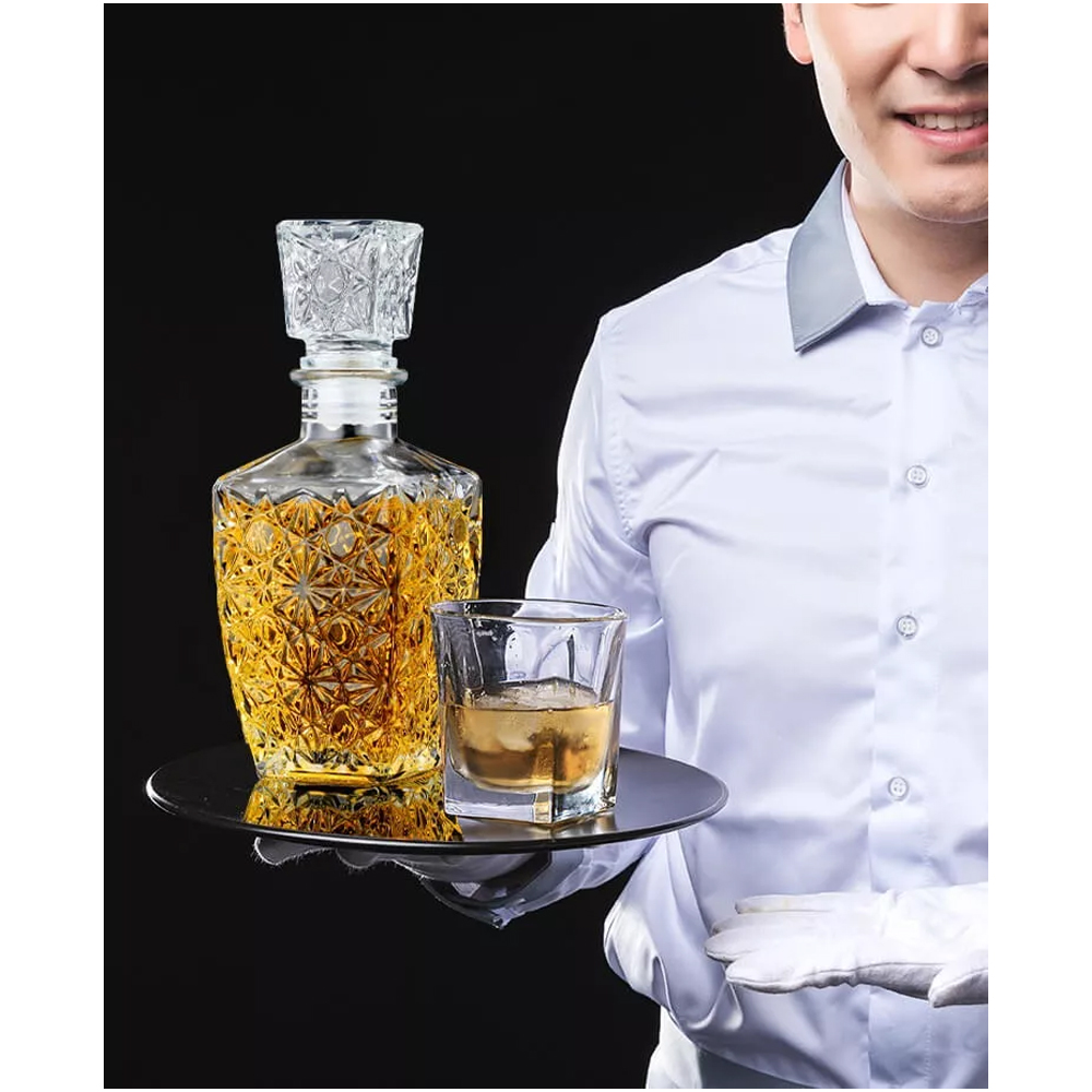Esta licorera no se limita a ser solo un recipiente para licores. Su diseño versátil permite utilizarla como un objeto decorativo en la sala de estar, un centro de atención en tu bar personal o incluso como regalo para ocasiones especiales. Además, su capacidad de 750ml es ideal para servir y almacenar una amplia gama de licores, desde whiskies selectos hasta destilados artesanales.
