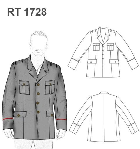 VIVO en manga/BOTONES(4) L.32 aprox en centro delantero /BOTONES(2) L.24 aprox en bolsillos superiores/BOTONES(2) L.30 aprox en bolsillos inferiores/HOMBRERAS (2) 0,7cms espesor aprox/ENTRETELA FUSIONADO en cuello,mangas,hombros,visas,ruedo y tapetas