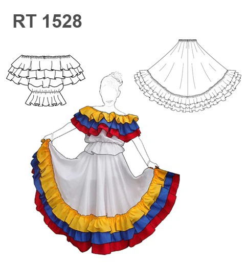 ELASTICO 1 cm ancho en escote/ELASTICO 3 cms ancho en cintura falda/HILO ELASTICO en cintura blusa