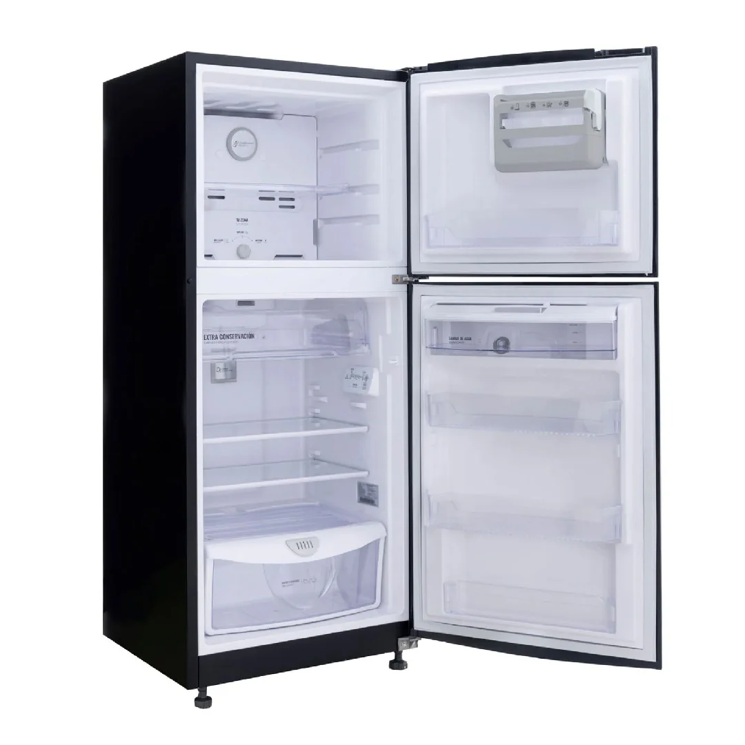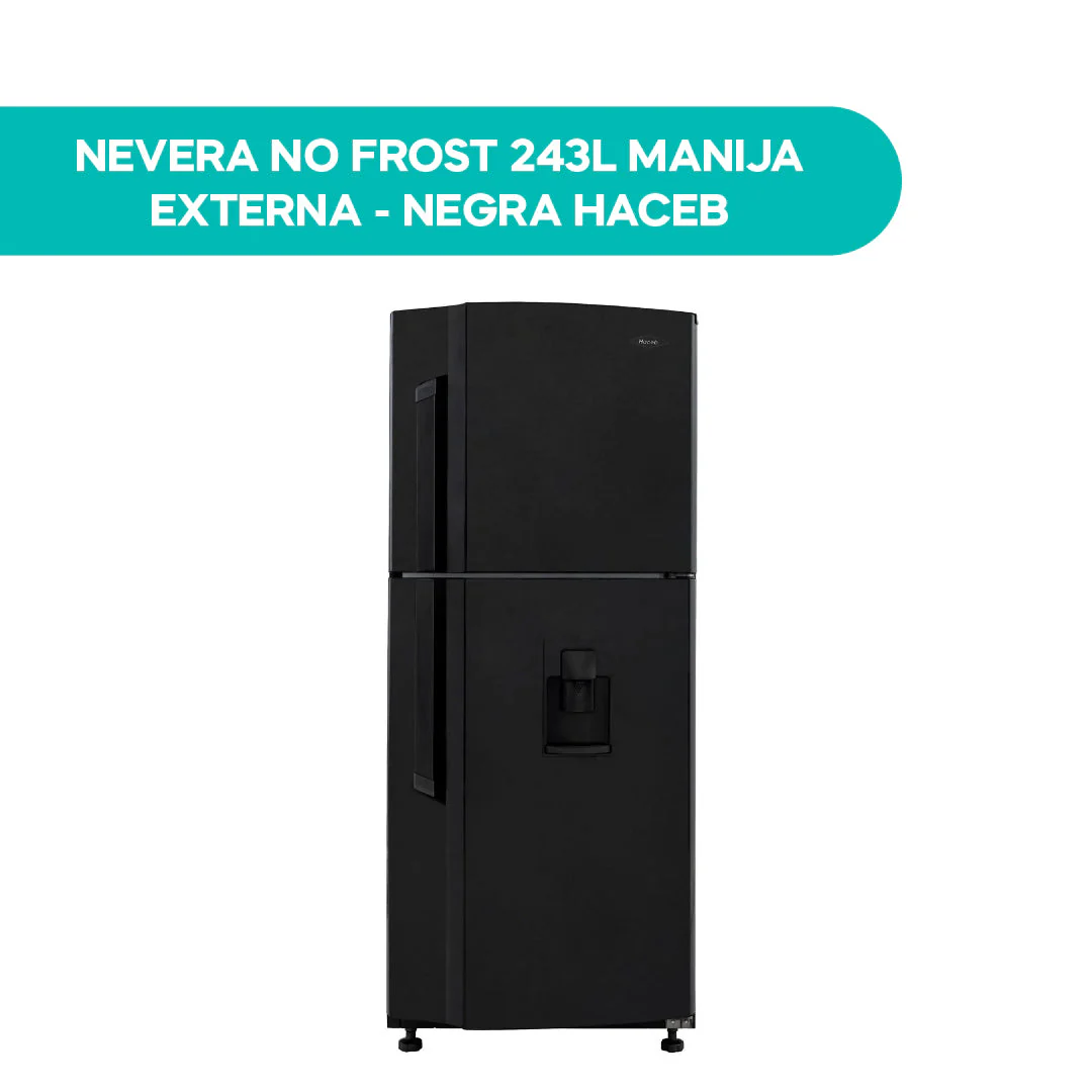Nevera Haceb negra de 243 litros brutos. Diseñada para alargar la vida de tus alimentos, única con sistema de conservación Himalaya de 5 componentes: frío sectorizado y estable en cada zona, corrientes de frío óptimas, control de humedad en bandeja de frutas y verduras, y compartimiento extra-frío. Cuenta con iluminación tipo LED de gran alcance para mayor visual y menos sombras, amplio espacio interior con distribución modular, para que ordenar sea un placer y un novedoso fabricante de hielo que te entrega hielos grandes y fáciles de sacar, disfruta tus bebidas frías por más tiempo.