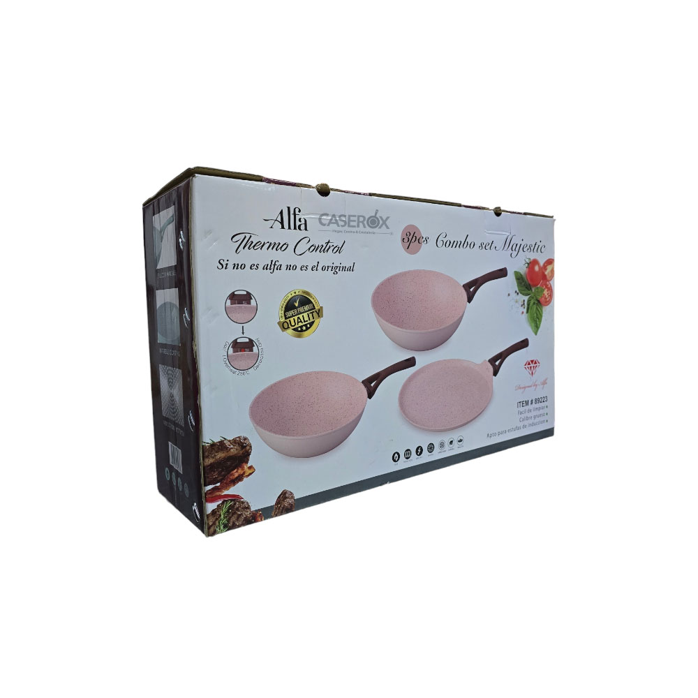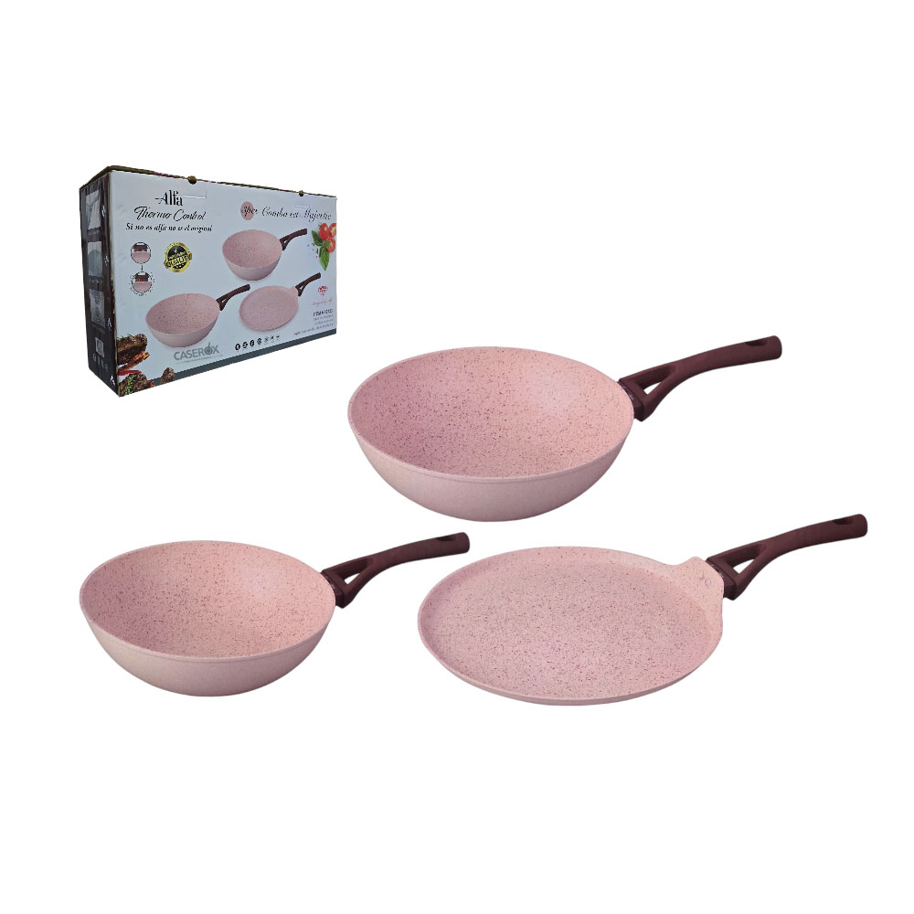 Set 2 Woks y Comal Aluminio c/antiadherente 3 pzas Rosa – ALFA