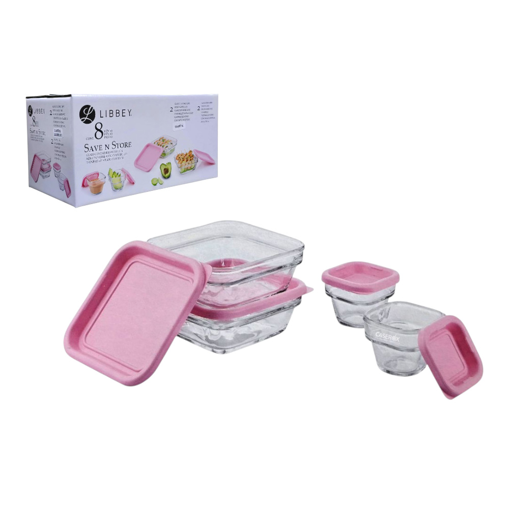 Set Refractarios Save’n Store 8pzas Rosa – Libbey