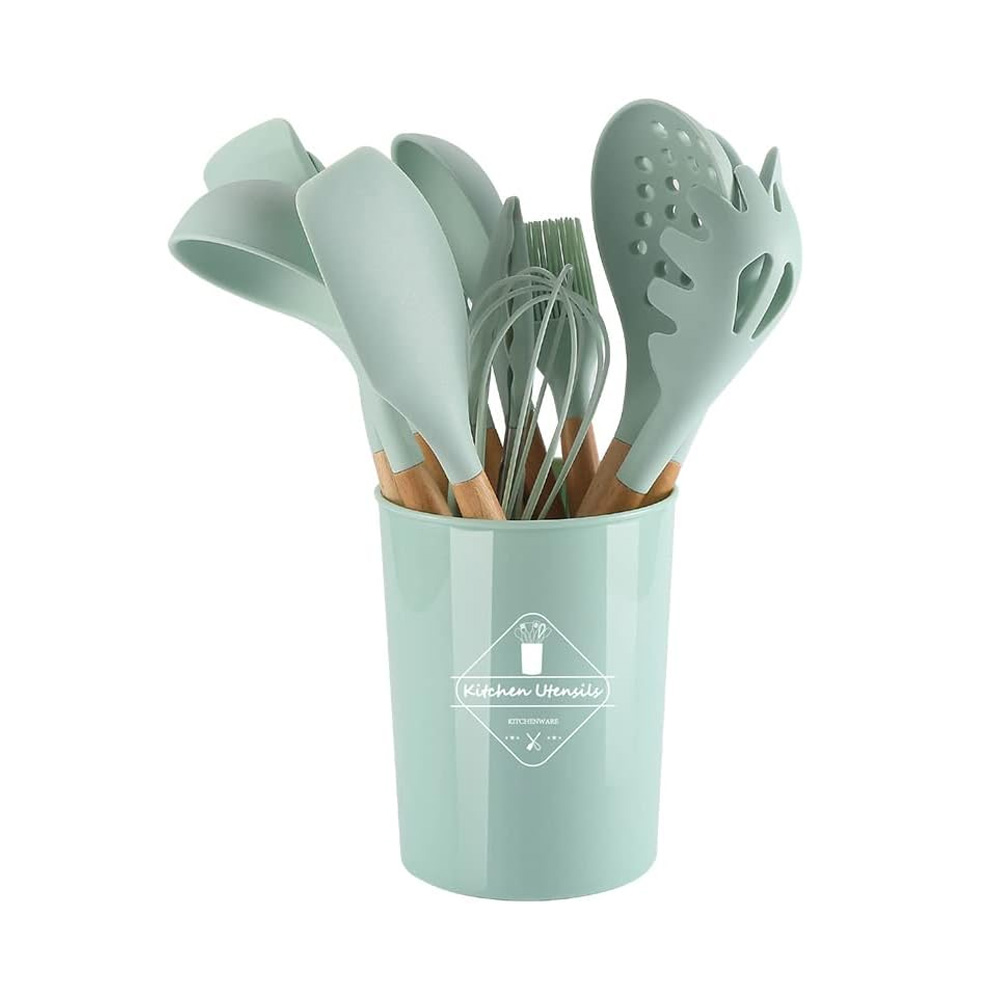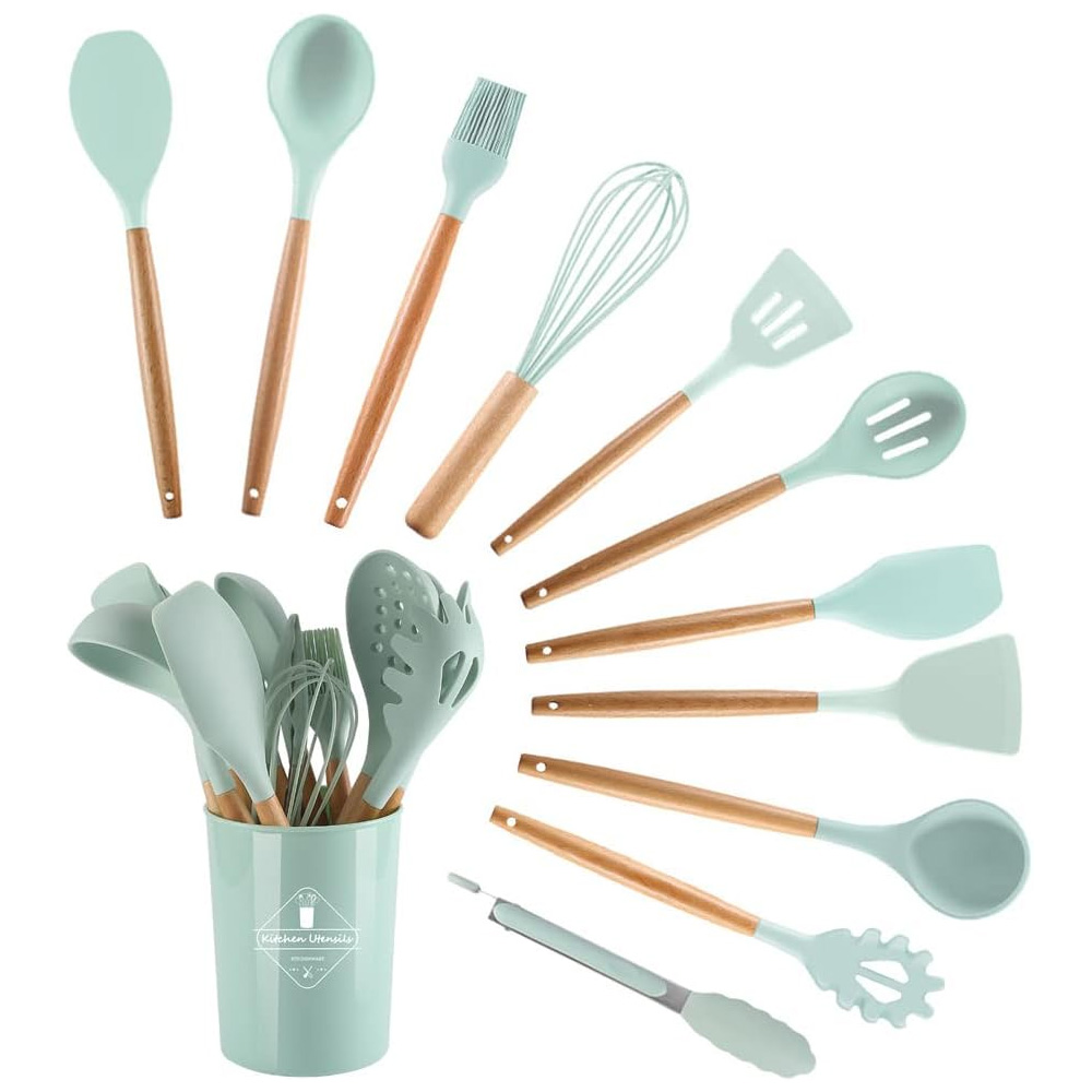 Set Utensilios de Cocina de Silicona 12 pzas Verde Claro – CSX