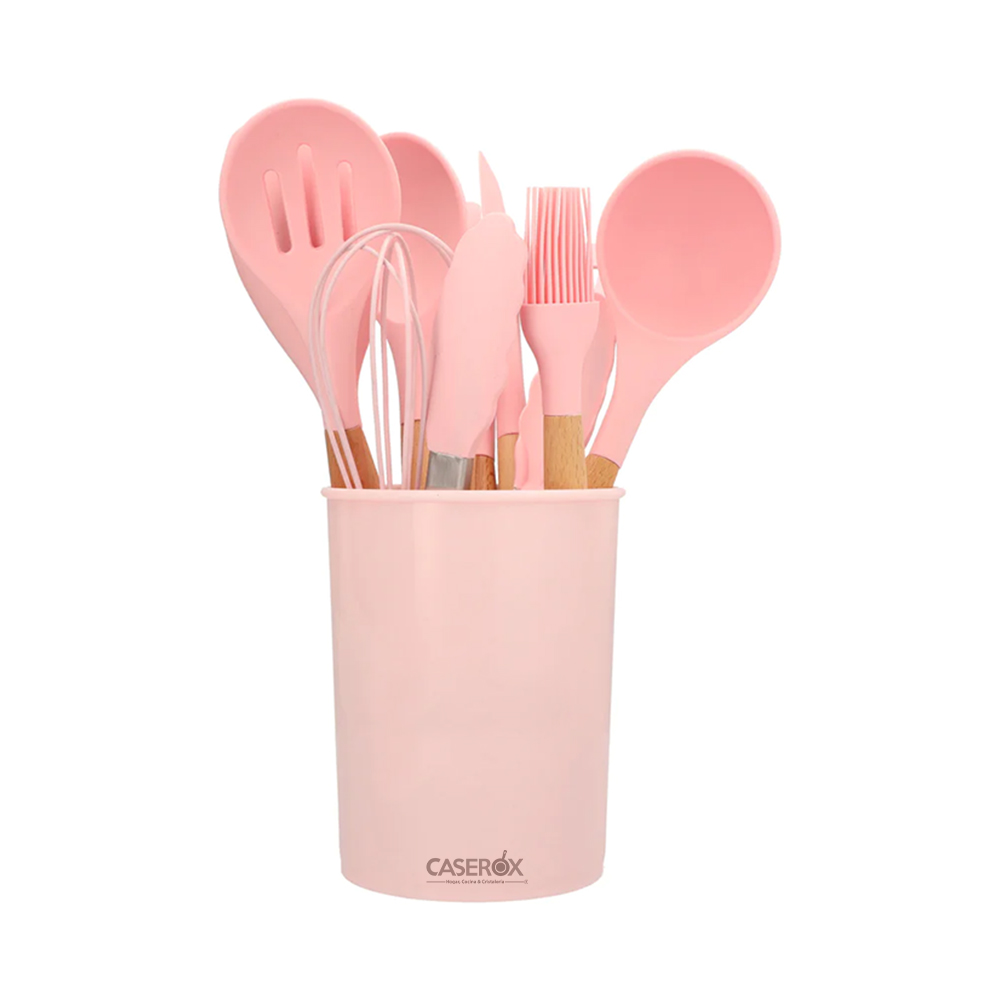 Set Utensilios de Silicon c/base 12 piezas Rosa – CASEROX