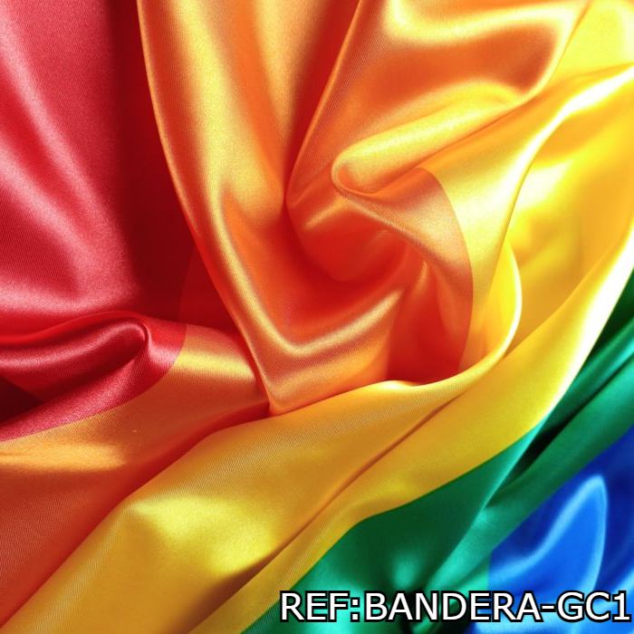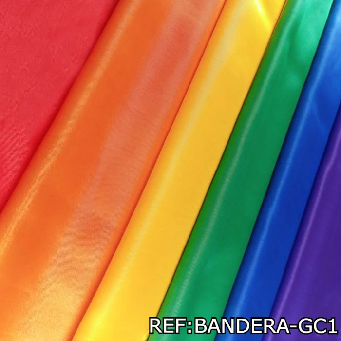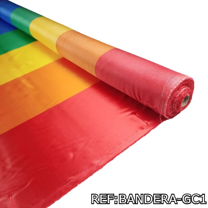 La tela Bandera Satinada LGTBIQ+ – por rollo – es un textil rígido y una anchura de 150 centímetros, esta tela cuenta con seis franjas de colores, cada una representando un color del arco iris, desde el rojo hasta el violeta. Su superficie brillante y lisa en el derecho y su acabado opaco en el revés la hacen fácil de trabajar para todo tipo de proyectos creativos.