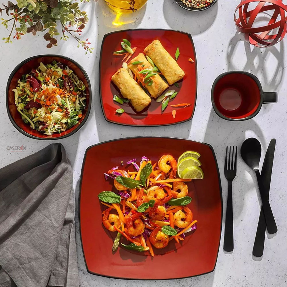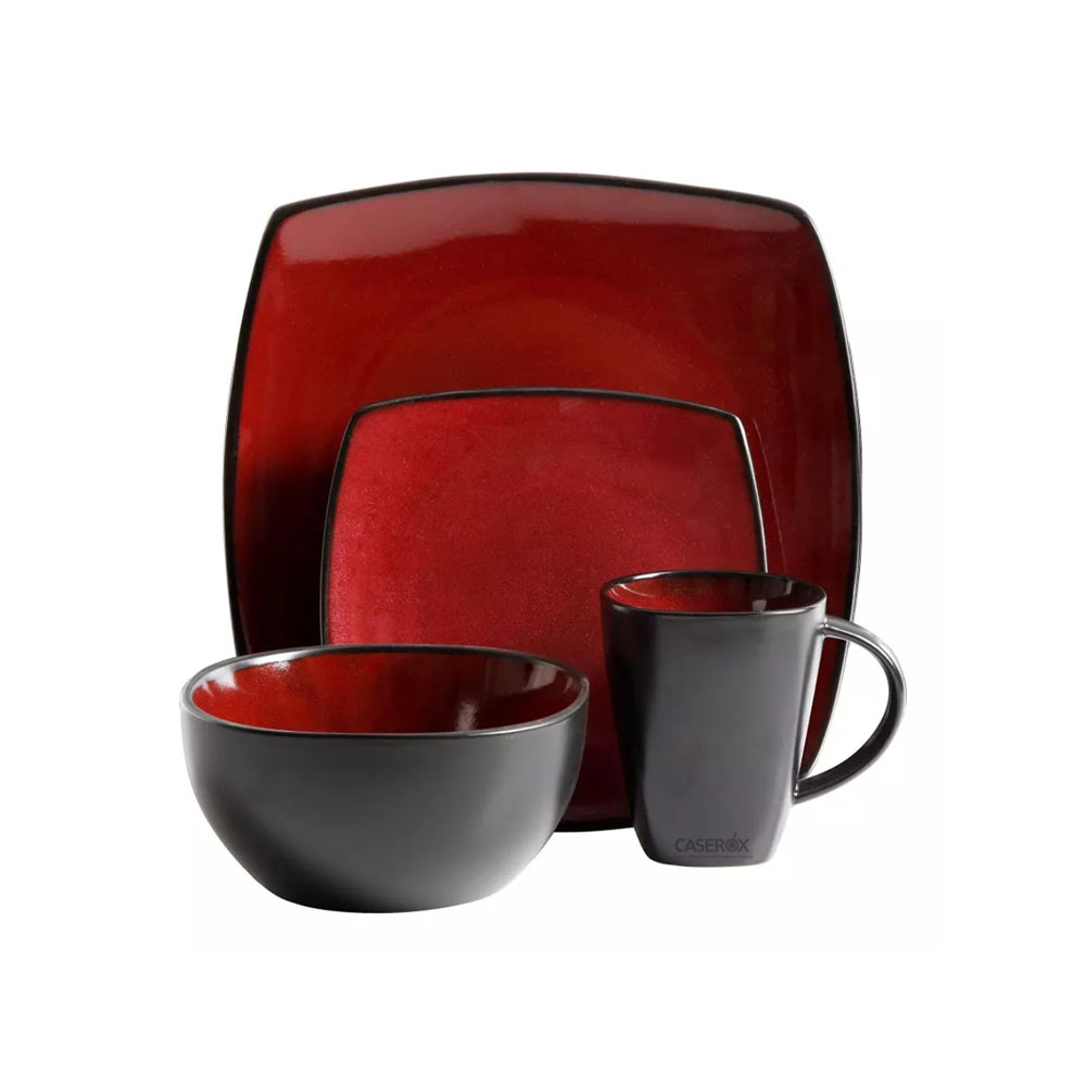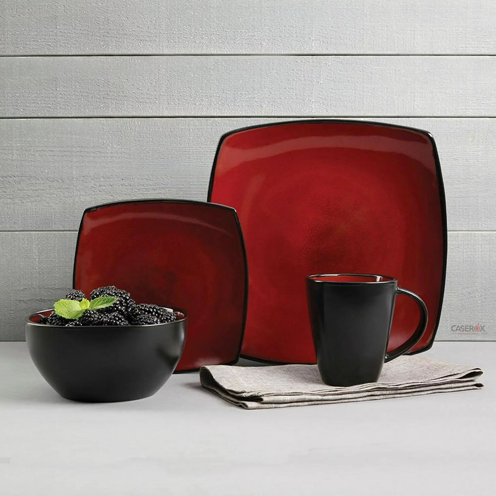 Gibson Elite siempre innovando en diseño trae para ti esta moderna vajilla Soho de cerámica en color rojo c/chocolate, para adornar tus platillos y hacerlos más apetecibles. Lúcete en tus reuniones con amigos y familiares.